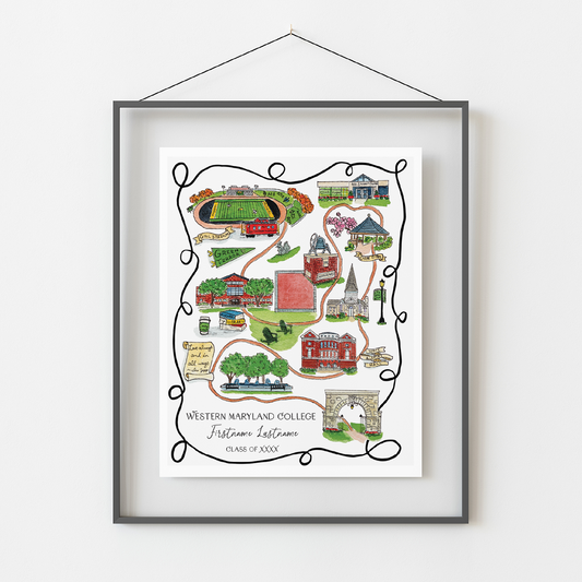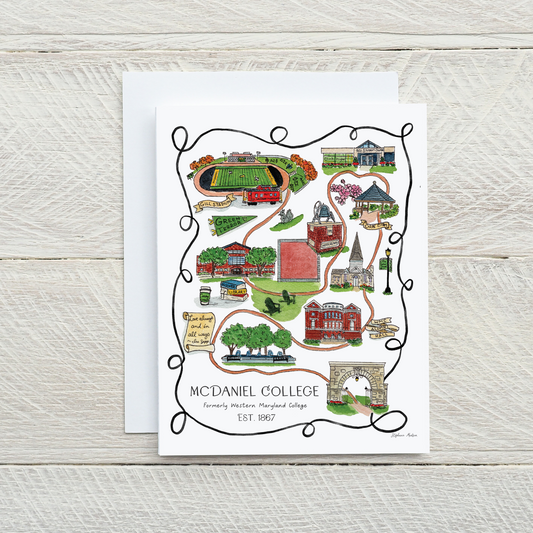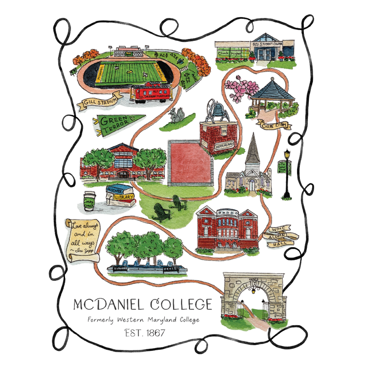 Magnets and Stickers - Illustrated Map of McDaniel College - Ships Free