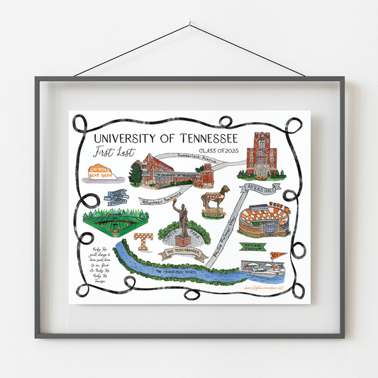 Magnets and Stickers - Illustrated Map of the University of Tennessee Ships Free