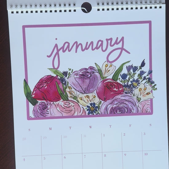 Artist-illustrated 12-month 2026 calendar hand-painted with love by artist Stephanie Madsen. Each month has a colorful bouquet of flowers.